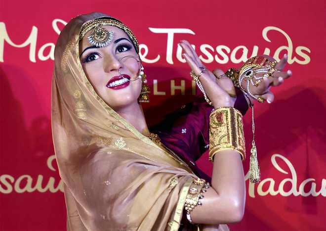 The newly unveiled wax-statue of legendary actress Madhubala at Madame Tussauds Delhi on Thursday. PTI